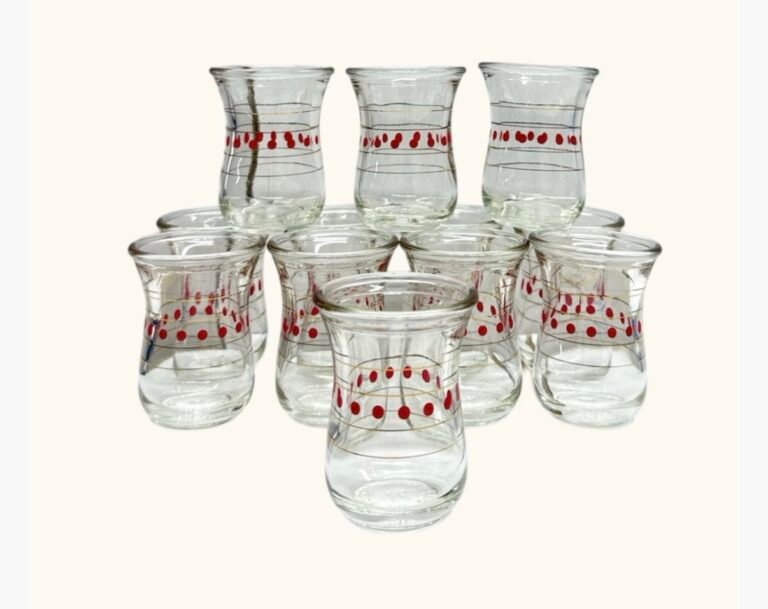 طقم الاستكانات اليابانية بنقش كويتي لون أحمر 60 مل ١٢ حبه