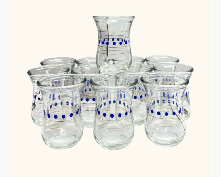 طقم الاستكانات اليابانية بنقش كويتي لون أزرق 60 مل ١٢ حبه